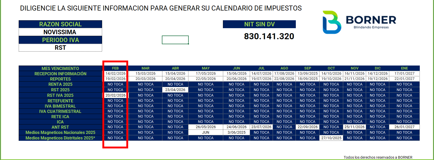 Procedimiento para el envío de la información de NOVISSIMA LTDA